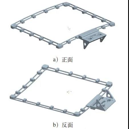 圖1所示鈦合金框架形狀復雜 , 壁厚不均勻 , 加工容易變形。如果沒有五軸加工中心,就需要工藝創新,設計合理的夾具和焊接工裝,才能保證零件加工要求。