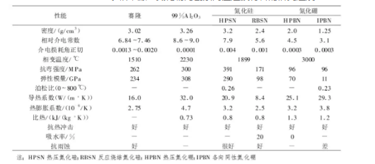 表格來源:氮化物陶瓷系高溫透波材料的研究進(jìn)展